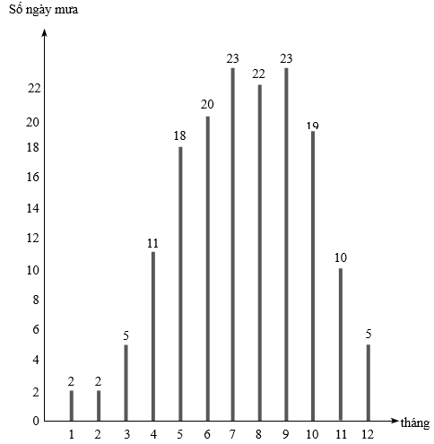 . b) Hai tháng có số ngày mưa nhiều nhất là tháng