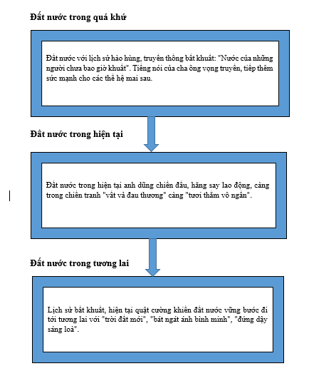 + Con người hiện lên trong tư thế của người làm chủ. Đại từ chỉ định “đây”, điệp ngữ, điệp cấu trúc “của chúng ta” khẳng định mạnh mẽ ý thức chủ quyền. Nếu trước kia, con người phải ra đi vì đại nghĩa để tìm lí tưởng, thì ngày nay, họ được ở trên chính đất đai, rừng núi quê hương mình, dõng dạc khẳng định quyền làm chủ non sông.