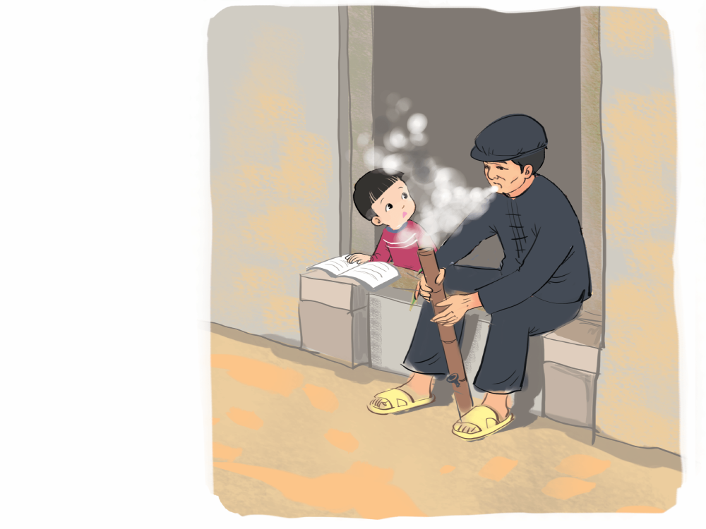 Bạn nhỏ hít phải khói thuốc, gây độc hại cho phổi, cơ quan hô hấp, lâu ngày dẫn đến các bệnh về đường hô hấp.