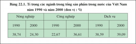 Dựa vào bảng cho biết: Tỉ trọng ngành kinh tế có xu hướng giảm dần là: