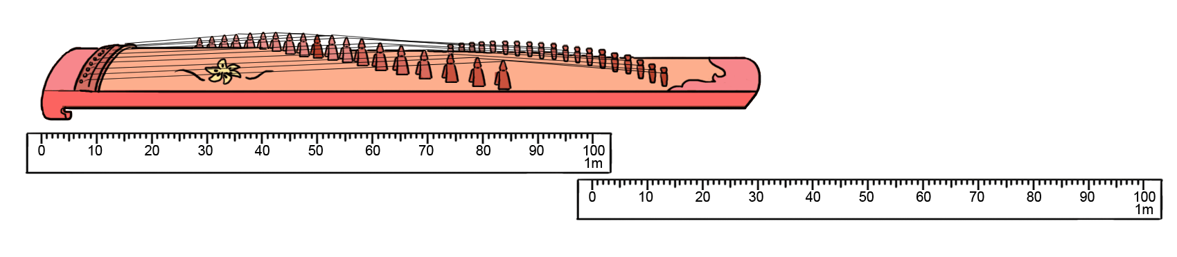 Đàn tranh dài khoảng 1 m 30 cm, hay 1 m