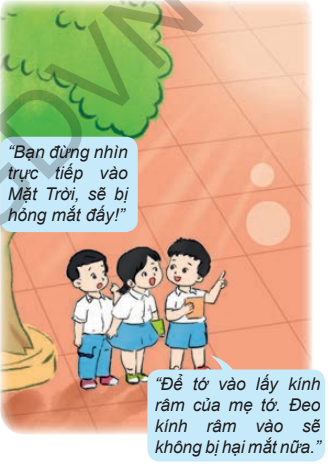 Một nhóm bạn đang rủ nhau quan sát Mặt Trời. Em đồng ý với ý kiến của bạn nào?